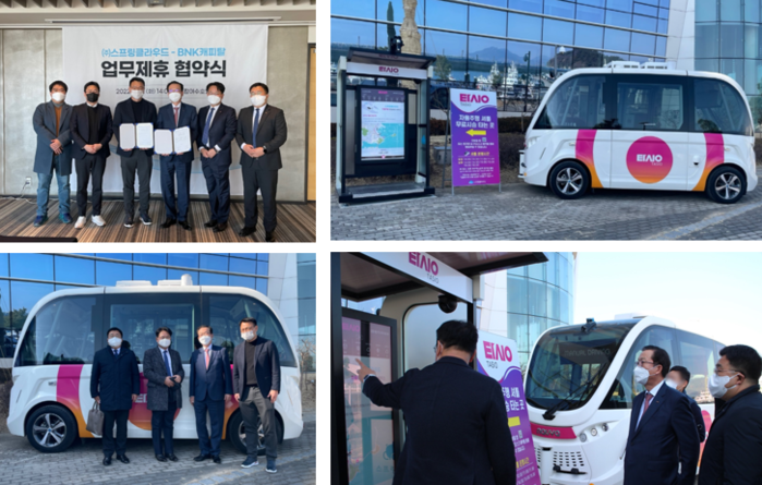 자율주행 모빌리티 서비스기업 스프링클라우드가 BNK캐피탈과 업무 협약을 체결하고, 공동 이익 창출 및 지속적인 상호 교류 협력을 위한 양해각서(MOU)를 체결했다고 밝혔다.