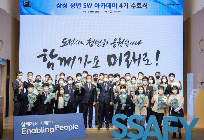 삼성전자는 9일 서울 강남구 멀티캠퍼스 교육센터에서 고용노동부 박화진 차관, 삼성전자 경영지원실최윤호 사장이 참석한 가운데 '삼성청년SW 아카데미(Samsung Software Academy For Youth, SSAFY)' 4기 수료식을 열었다.
