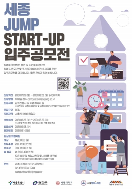 세종대학교(총장 배덕효) 캠퍼스타운 지원센터는 예비창업자를 지원하기 위한 캠퍼스타운 입주공모전을 개최한다.