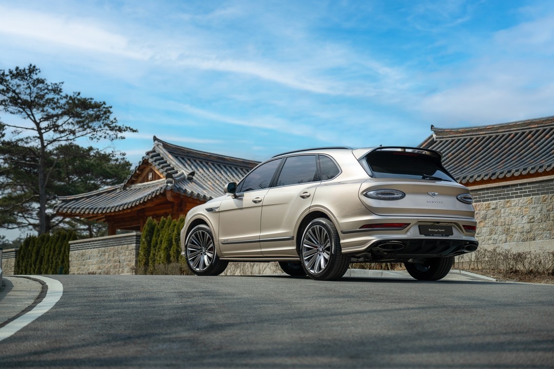 외관에는 스피드 모델 전용 디자인 요소가 적용됐다. 다크 틴트 헤드램프와 그레이 컬러 테일램프, 스피드 배지 등이 특징이다. 기본 사양으로 22인치 스피드 전용 휠이 제공되며, 벤틀리 최초의 23인치 휠 옵션도 선택할 수 있다.