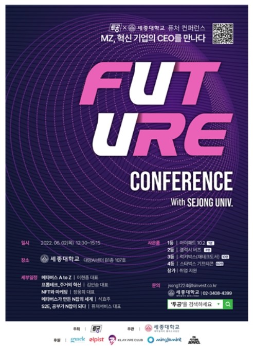 이번 컨퍼런스는 CEO들의 강연을 통해 청년들에게 다가올 미래의 올바른 경력 개발 방법을 소개하여 인생의 목표 설정을 돕고 메타버스, WEB 3.0, NFT 등 미래 기술을 활용한 실제 기업들을 조명한다.