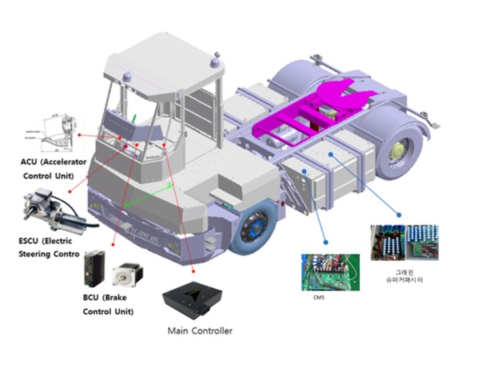 아울러, 야드트랙터에 차세대 친환경 배터리인 슈퍼 커패시터를 탑재하여 주행성능과 충·방전 효율을 향상하고, 라이다(LiDAR) 센서 및 차량용 무선통신(WAVE) 등 4차 산업 기술 적용을 통해 각종 위험요소를 감지·방지한다.