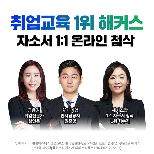 이에 해커스잡은 자소서 1:1 온라인 첨삭을 제공한다고 밝혔다.