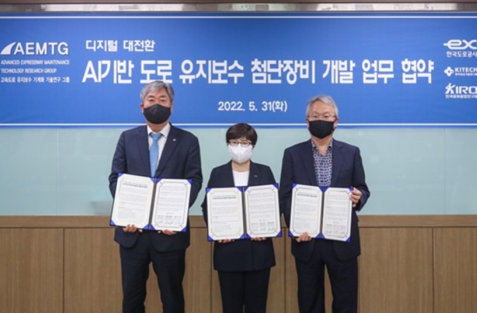 한국도로공사(사장 김진숙)는 한국생산기술연구원(원장 이낙규), 한국로봇융합연구원(원장 여준구)과 지난 5월 31일(화) 고속도로 유지보수 첨단장비 개발을 위한 업무협약을 체결했다고 밝혔다.