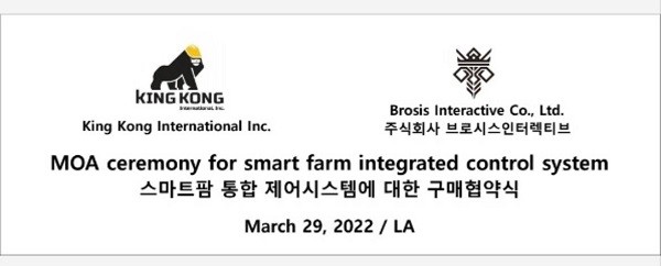 양사의 업무협력을 통해 (주)브로시스인터렉티브는 (주)킹콩 인터내셔널에 2,100만 달러 규모의 AI 스마트팜 통합제어시스템을 납품한다.