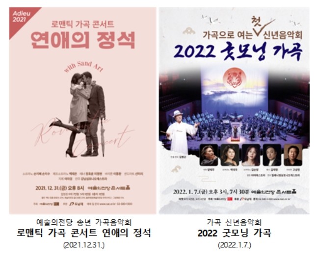 2020년부터 가곡 활성화 운동을 전개하며 스토리가 있는 가곡 콘서트, 대학 가곡 축제, 가곡 무료 특강 등 다양한 가곡 프로그램을 제작해 온 예술의전당이 우리가곡 100년사에 처음으로 한해의 끝과 시작을 기리는 송년 가곡 음악회인 <연애의 정석>과 신년 가곡음악회 <2022 굿모닝 가곡>을 연이어 개최한다.