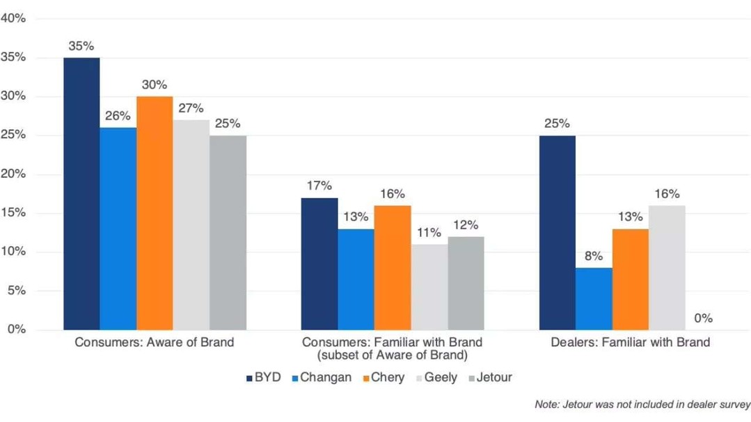 이 외에도 체리(Chery), 지리(Geely), 창안(Changan), 제투어(Jetour) 등이 인지된 브랜드로 언급됐다. 다만 대부분은 이름을 들어본 정도에 그쳤고, 브랜드에 대한 깊은 이해는 부족한 것으로 나타났다.