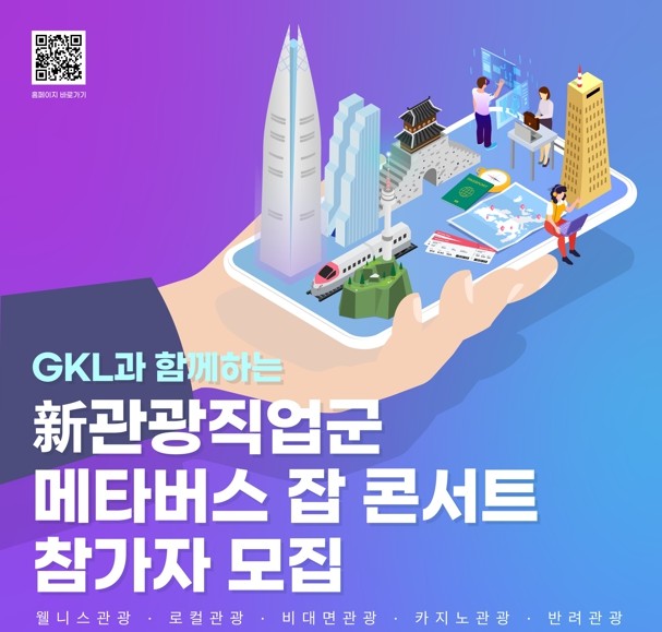 GKL사회공헌재단(이사장 이덕형)이 관광에 관심있는 청년들의 진로 탐색을 위한 ‘GKL과 함께하는 新관광직업군 메타버스 잡 콘서트’에 참가할 학생 및 구직자를 5월 2일부터 15일까지 모집한다.