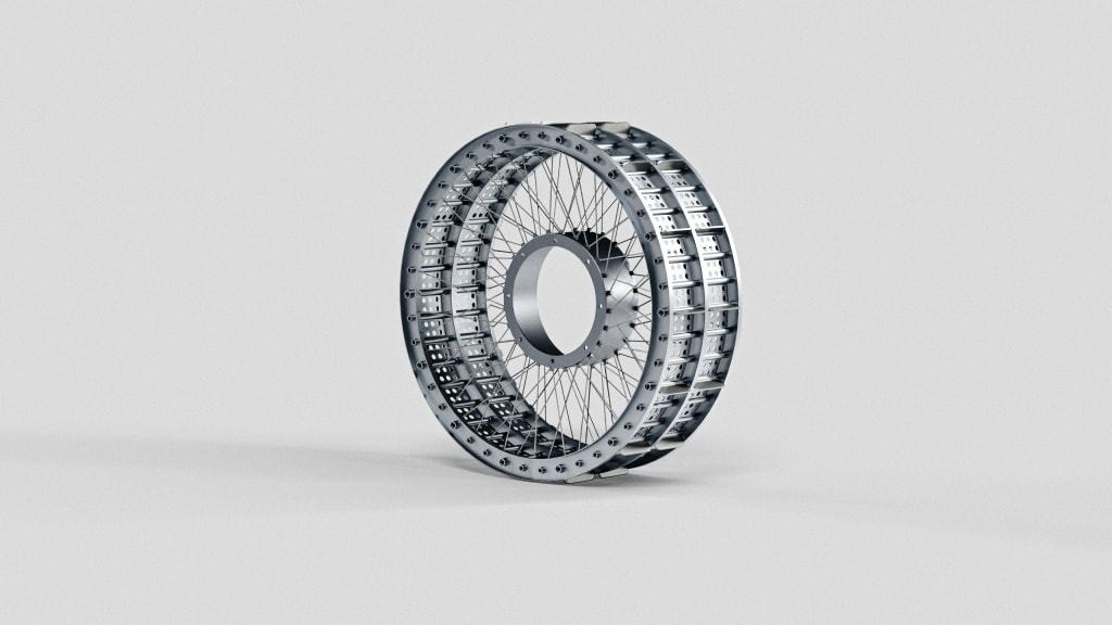 아스트로보틱이 고안한 바퀴는 허브와 림을 경량 텐션 케이블로 연결하는 구조다. 이 방식을 통해 지형 적응성을 높이면서도 전체 중량을 줄이고 접지력을 향상시키며 마모를 줄이는 장점이 있다.