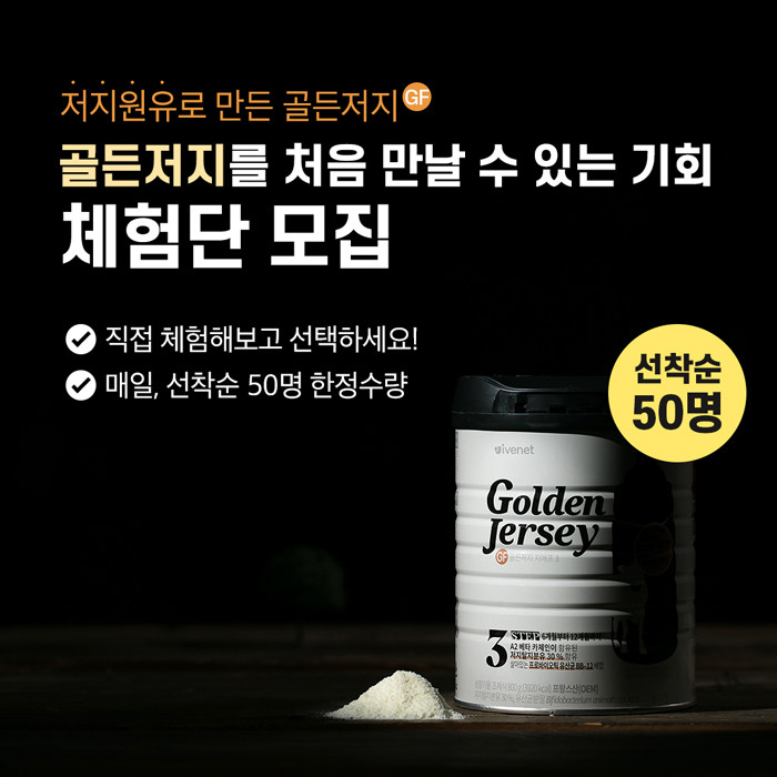 23일부터 2주간 이뤄지는 이번 체험단 모집은 매일, 선착순 50명을 대상으로 한정 진행된다. 아이배냇몰 홈페이지에서 신청하면 ‘골든 저지 지에프’ 800g 제품을 무상으로 체험할 수 있다. 기존 산양분유 체험자도 신청 가능하다.