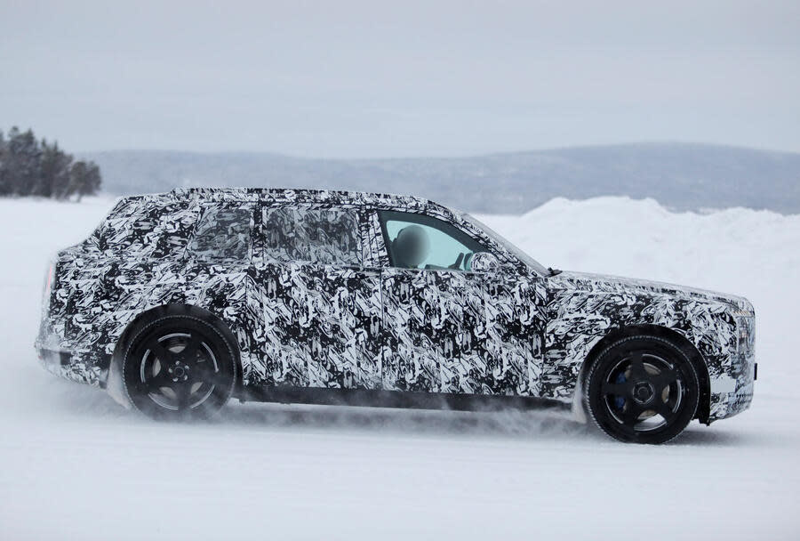 이번에 포착된 프로토타입은 스웨덴에 위치한 혹한기 테스트 시설에서 주행 테스트를 진행 중인 모습이다. 위장막을 두른 차체지만, 전반적인 비율과 실루엣은 롤스로이스의 유일한 SUV인 컬리넌과 유사해 전기 버전 컬리넌 또는 전기 SUV 신모델일 가능성에 무게가 실린다.