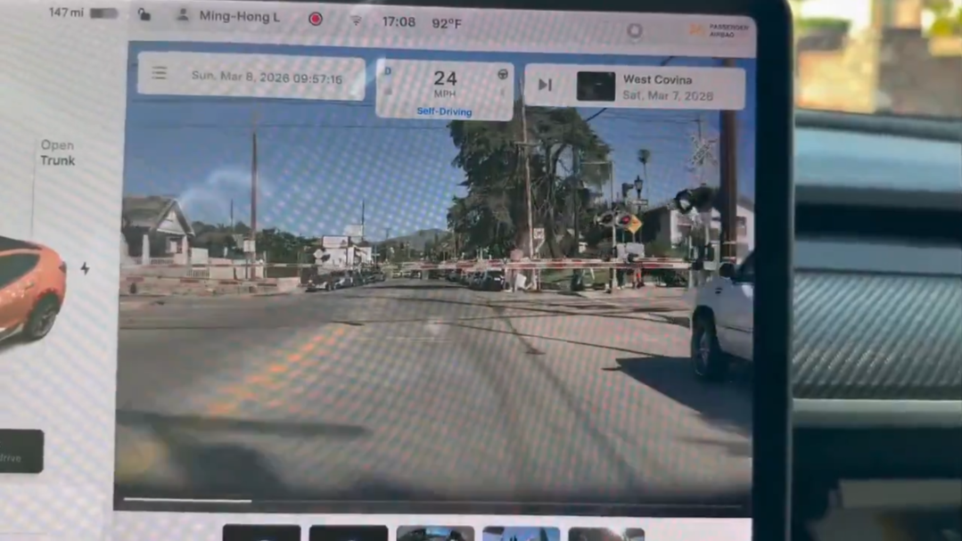 테슬라의 완전자율주행 시스템 FSD가 작동 중인 차량이 철도 건널목 차단기를 들이받고 선로에 진입하는 영상이 온라인에서 확산되며 안전성 논란이 다시 불거지고 있다.