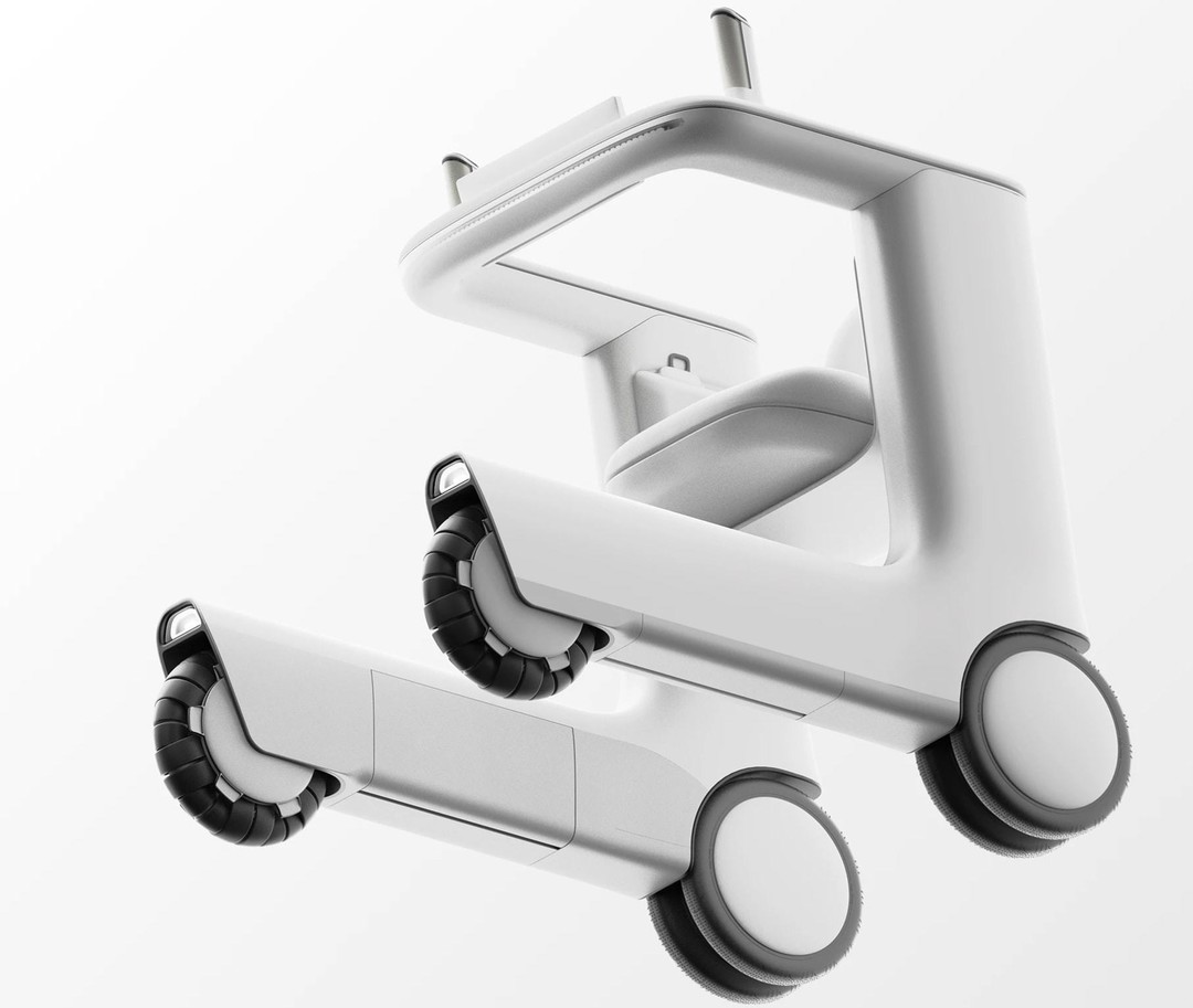 프레임 디자인 역시 미래적인 형태를 갖췄다. 사용자의 체중을 안정적으로 지지하도록 설계됐으며, 보행 보조 장치와 이동 스쿠터 역할을 동시에 수행할 수 있도록 구조가 강화됐다.