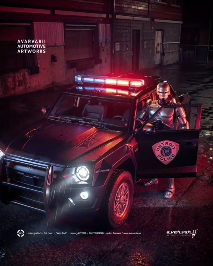 인스타그램에서 활동하는 디지털 아티스트 @avarvarii가 이 가상 모델을 새롭게 손보며 업데이트 버전을 공개했기 때문이다. 이번에는 디트로이트 경찰 데칼을 적용하고 강인한 불바와 루프 위 긴급 경광등, 각종 장비를 더해 완전한 경찰 차량 콘셉트로 변신했다.