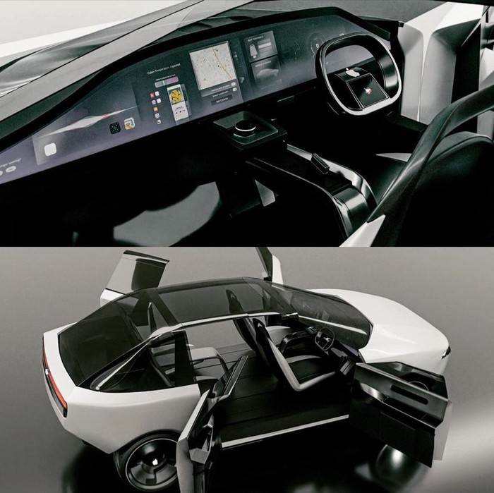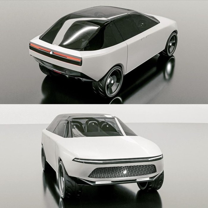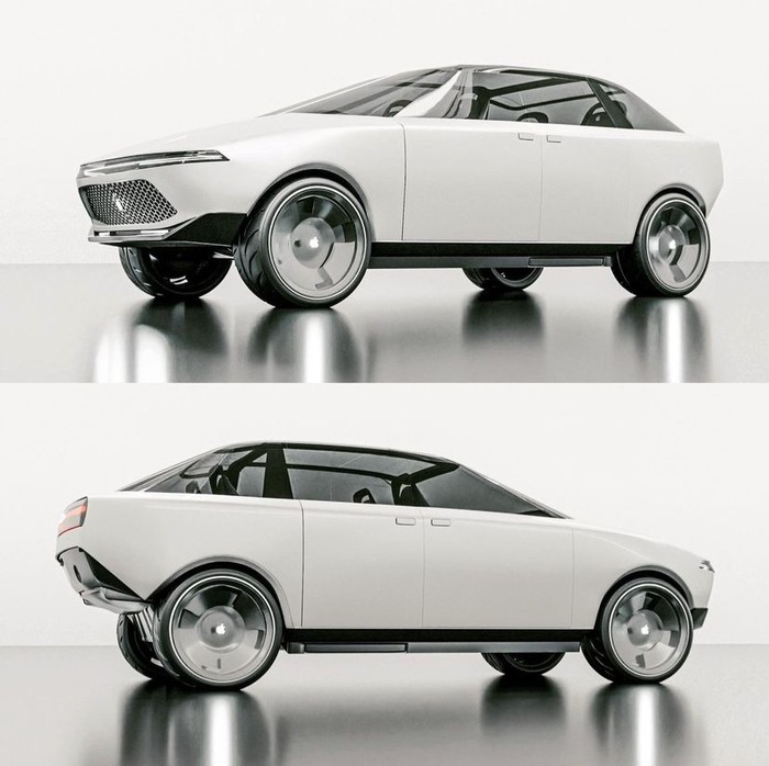 자동차 리스 업체 ‘바나라마’는 앞서 애플에서 등록한 기둥 없는 차체 구조 특허를 바탕으로 애플카 콘셉트 렌더링을 공개한 적이 있다. 해당 렌더링은 전반적으로 직선 라인을 강조하며 앞 유리, 창문, 선루프까지 이음매 부분을 곡선 처리해 미래적인 디자인의 애플카 SUV를 선보였다.