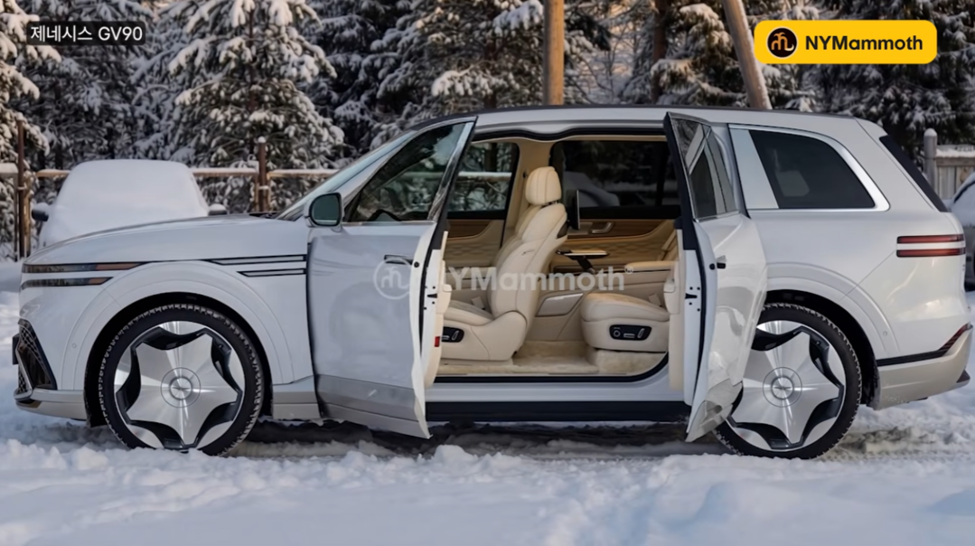 최근 유튜브 채널 ‘ShortsCar’ 등이 포착한 제네시스 GV90 P1(Production 1) 프로토타입 스파이샷에서 코치 도어 구조가 확인됐다. 이를 기반으로 유튜브 채널 ‘NYMammoth’가 제작한 렌더링 이미지가 공개되며 관심이 커지고 있다.
