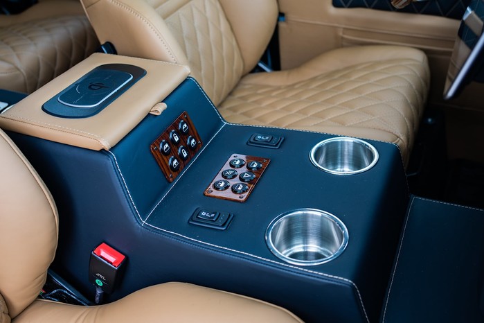 실내는 베이지색 포르쉐 나파 가죽으로 감싼 열선통풍 레카로 엑스퍼트 S 시트와 에반더 우드 스티어링 휠을 장착했다. 뒷좌석에는 안쪽으로 향하는 3열 점프 시트와 독특한 티크 목재 벤치가 있다. 블루투스, 와이파이, 원격시동, 백업 센서, 전후방 카메라, 3개의 무선충전 패드를 갖춘 알파인 플로팅 헤일로 인포테인먼트 시스템으로 최첨단 기술을 탑재했다.