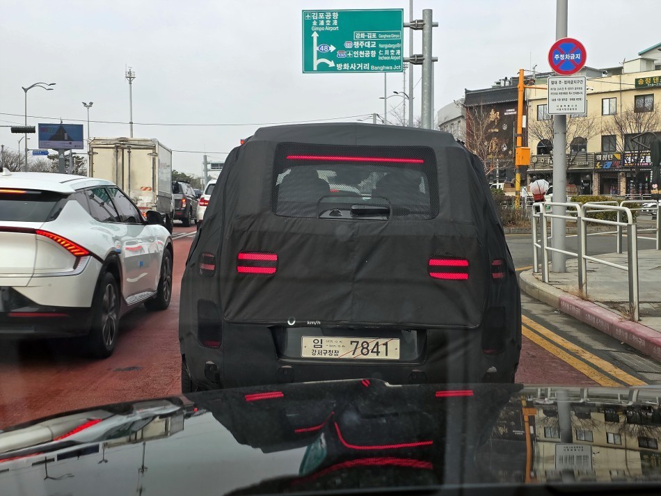 이번 테스트 차량은 수도권 일대 도로에서 도심 주행 테스트를 진행 중이었다. 위장막의 일부분이 벗겨진 모습이라, 전체적인 디자인 형태를 가늠해 볼 수 있다. GV90은 제네시스 네오룬(Neolun) 콘셉트에서 강한 영향을 받은 디자인이 특징이다. 후면에는 브랜드 시그니처인 투-라인 테일램프가 적용됐으며, 전면 펜더까지 이어지는 투-라인 방향지시등도 확인된다.
