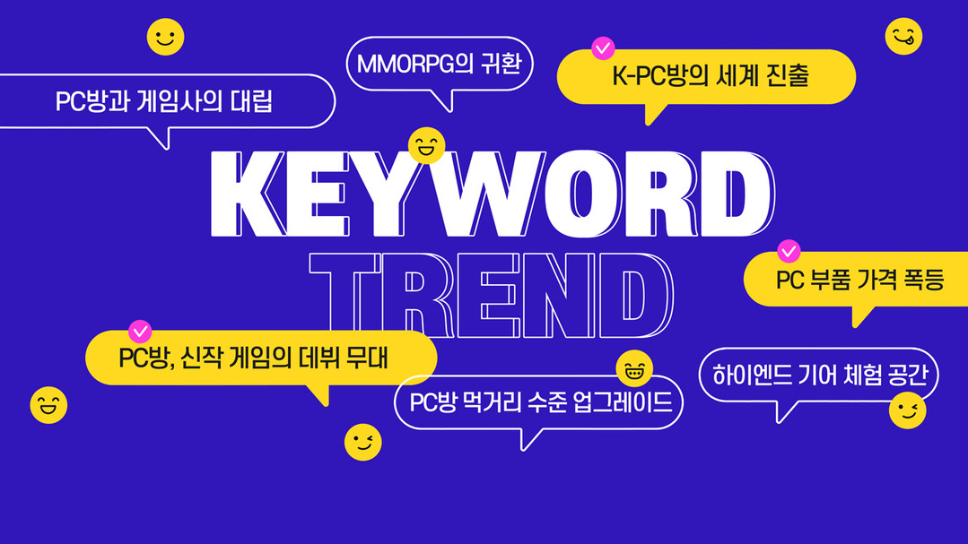 제시된 트렌드는 ‘K-PC방의 세계 진출’, ‘MMORPG의 귀환’, ‘PC방과 게임사의 갈등’, ‘PC방, 신작 게임의 데뷔 무대’, ‘PC방 먹거리 수준 업그레이드’, ‘PC 부품 가격 상승’, ‘하이엔드 기어 체험 공간’ 등 총 7가지다. 이 가운데 일부는 수년간 이어진 흐름이며, 일부는 올해 1분기에 두드러진 특징으로 나타났다.